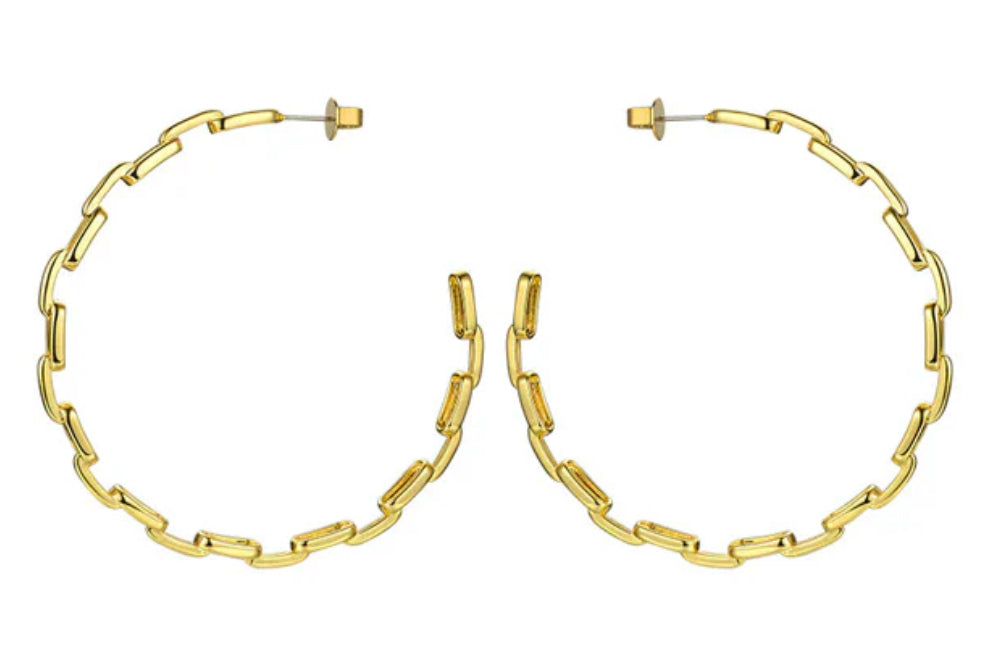 Introducing our showstopping Big Hoop Earrings, the perfect statement accessory to elevate any outfit. Crafted from high-quality 18k gold plated brass, these hoops offer a lustrous shine that catches the light with every turn of the head. The large size of these earrings makes them a bold and eye-catching piece that will have heads turning in admiration.