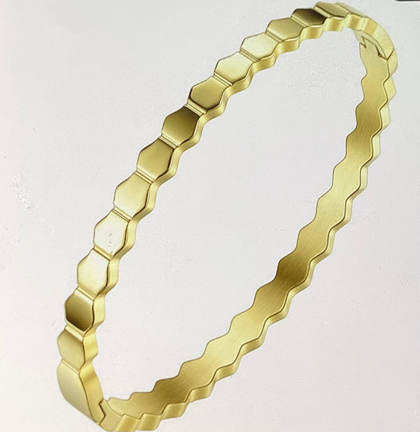 We've designed the Stackable Honey Bracelet with durability in mind. The water and tarnish resistant plating ensure it remains looking shiny and new, even after repeated wear. This bangle features a simple and classic design that can be dressed up or down, making it a versatile addition to any jewelry collection.