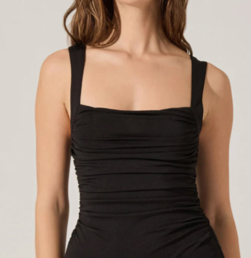 This is a must have bodysuit. It offers a sleek modern fit that is flattering around the waistline due to the ruching fabric. Wear alone with a great pair of high waisted jeans or layer under your favorite blazer.