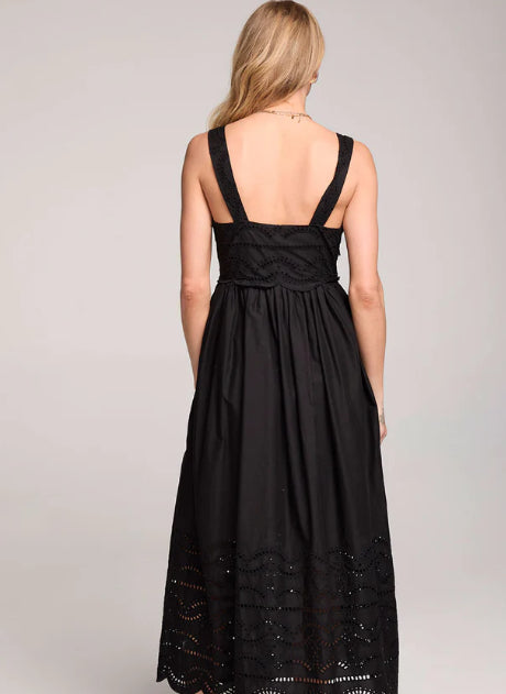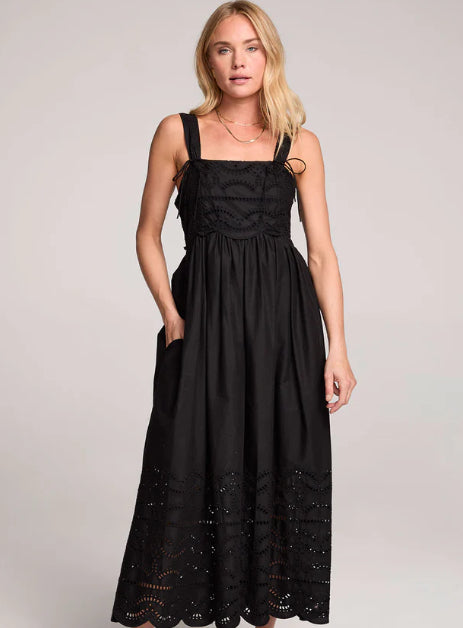 Wide straps frame an open neckline, adding a charming touch, while delicate scallop detailing at the hemline completes the look with subtle sophistication.