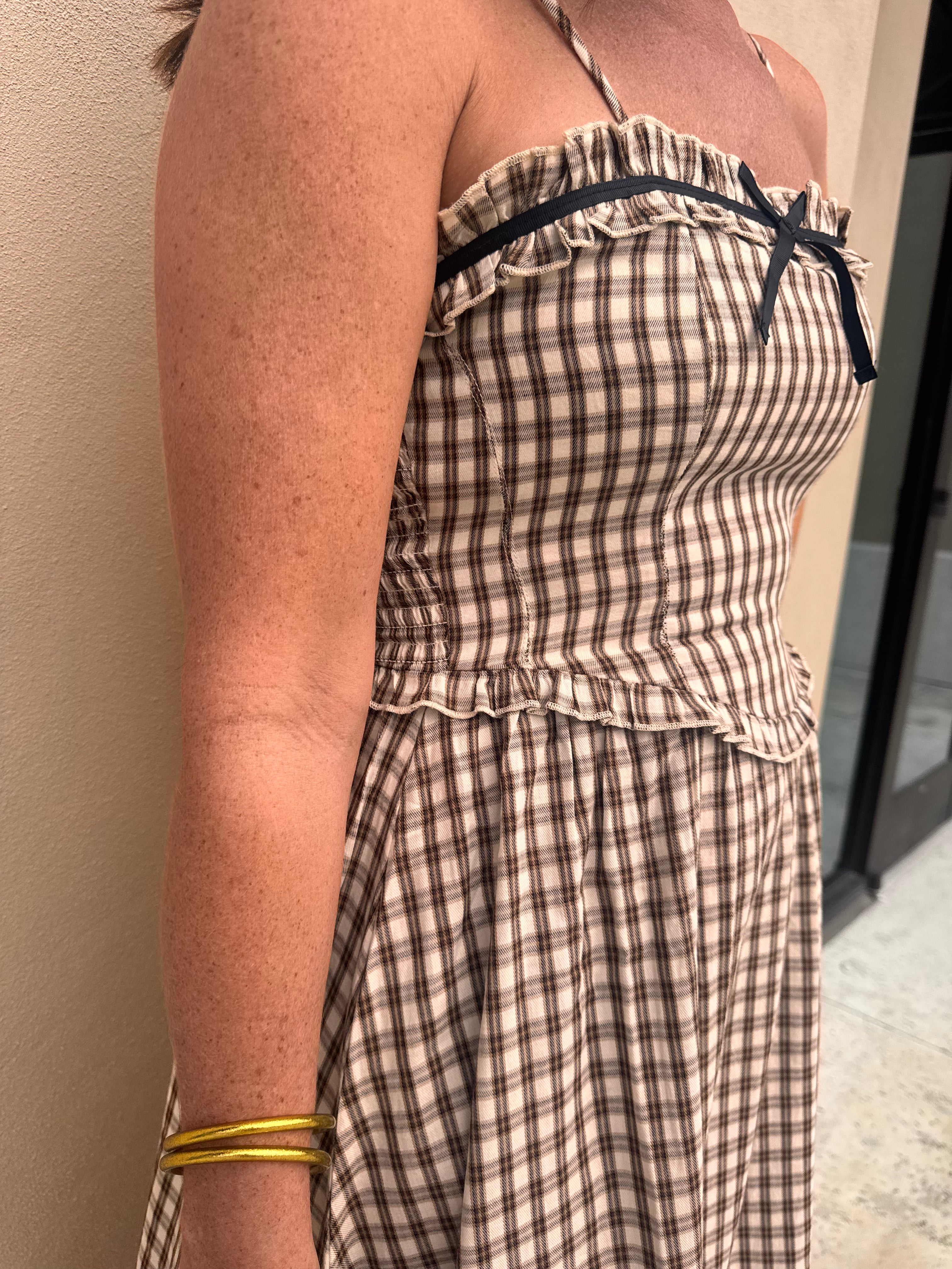 Lucy Paris Kiko Mixed Media Dress Espresso