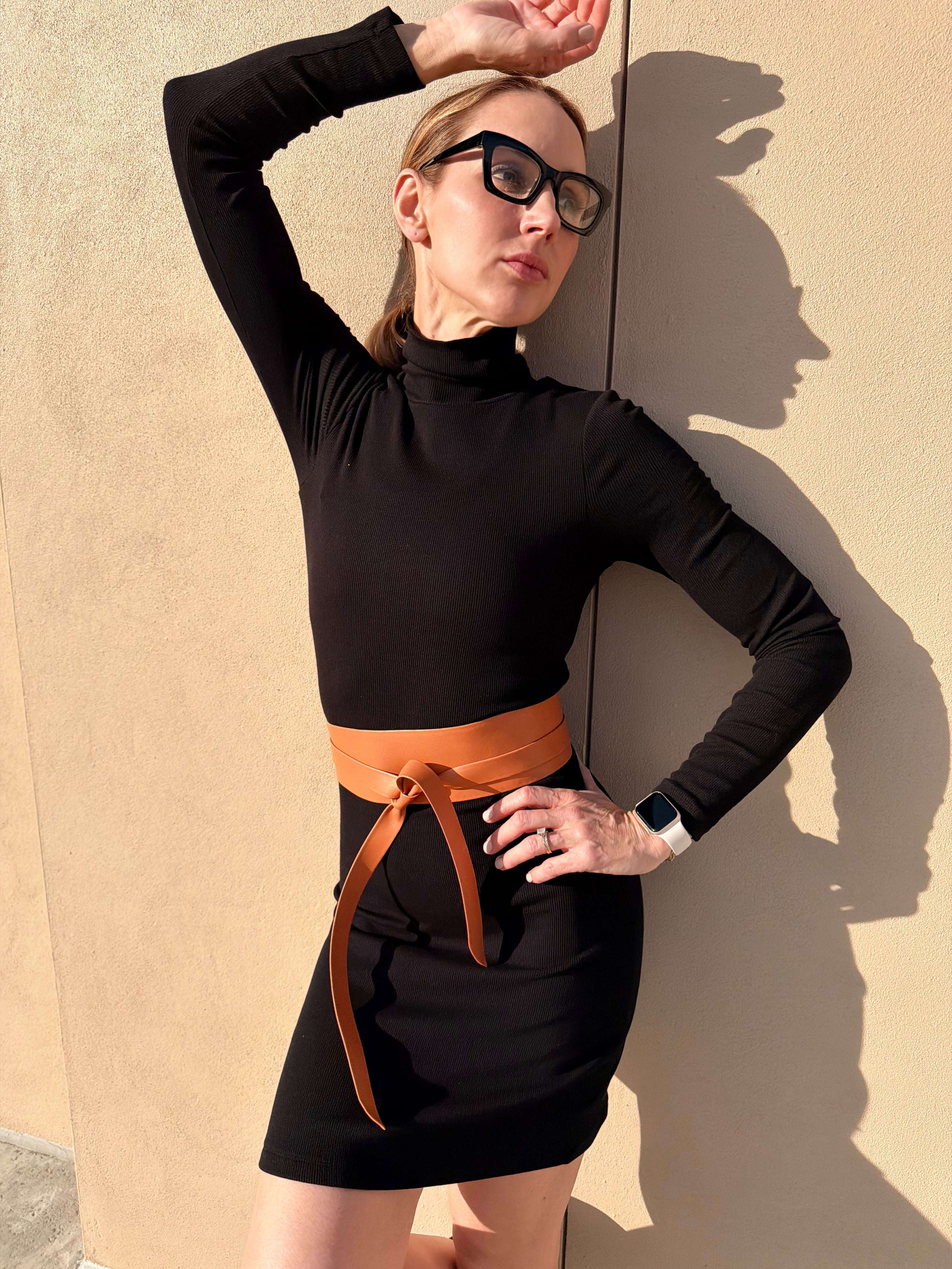 Bobi Los Angeles Turtleneck Long Sleeve Mini Dress Black