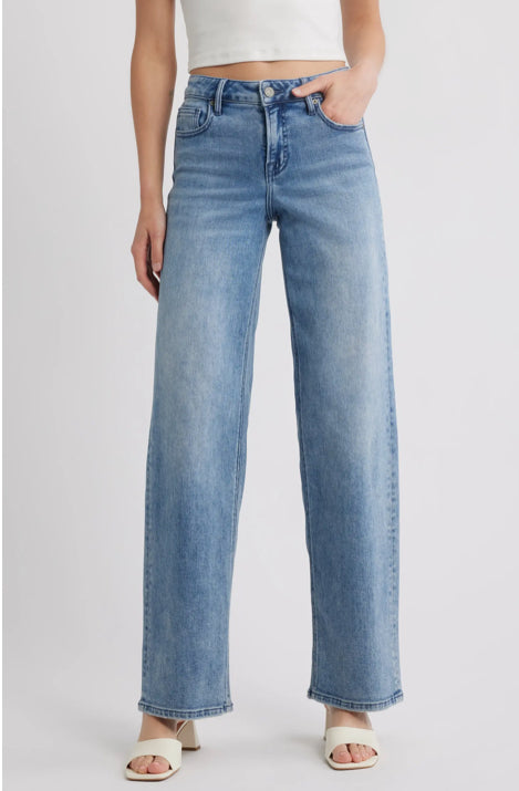 The Hidden Logan Dad Jean features a midi rise fit with a relaxed, vintage-inspired silhouette.  Designed for effortless style and comfort.  These jeans sit slightly below the natural waist and fall into a straight, loose leg that gives that gives that laid-back dad jean look.