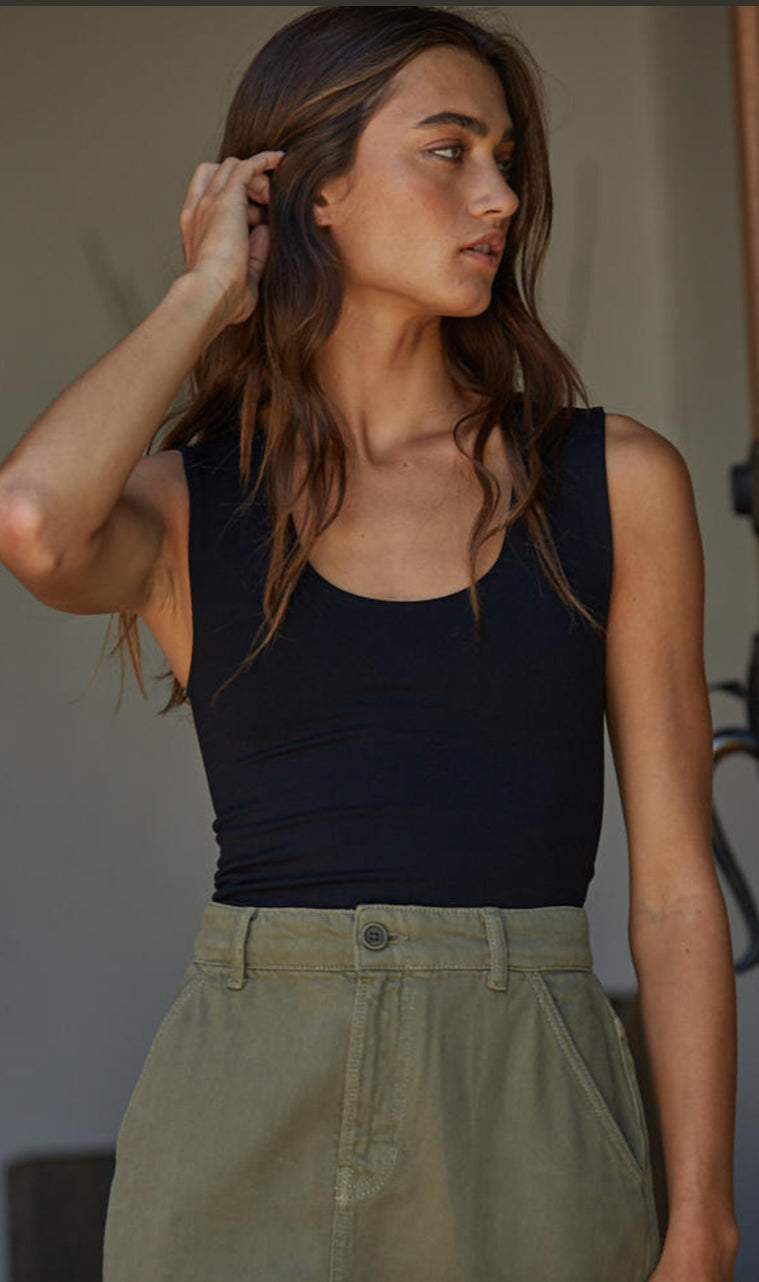 This seamless tank top is a classic, fitted scoop-neck tank in a crisp white color. It features wide shoulder straps and a flattering, slightly stretchy fabric that hugs the body. The design is sleek and minimalistic, making it an effortless wardrobe staple that pairs well with jeans, skirts, or layering pieces. Perfect for casual wear, layering, or dressing up with accessories, this tank is both versatile and timeless.