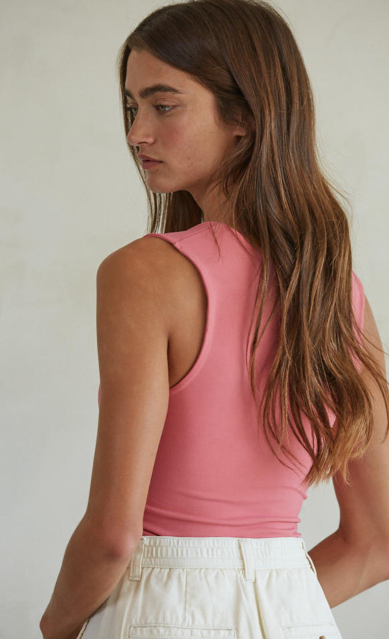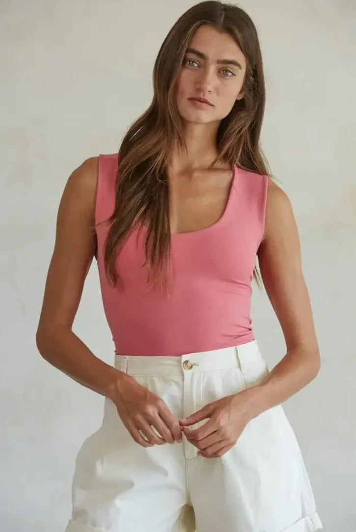 This seamless tank top is a classic, fitted scoop-neck tank in a crisp white color. It features wide shoulder straps and a flattering, slightly stretchy fabric that hugs the body. The design is sleek and minimalistic, making it an effortless wardrobe staple that pairs well with jeans, skirts, or layering pieces. Perfect for casual wear, layering, or dressing up with accessories, this tank is both versatile and timeless.