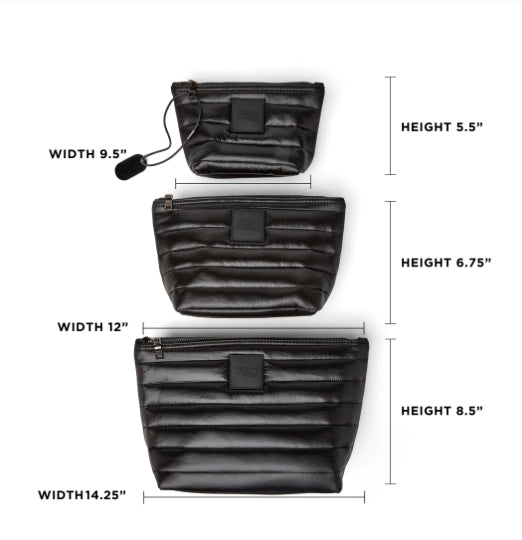 The Travel Trio Organizational Pouches are a triple threat of style, organization, and wow! These three perfectly sized bags keep you organized during everyday adventures to jet-setting around the world. Our signature quilting exterior is lined with silver foil finish providing shape and style to these gems. Perfect for essentials from beauty products to power cords and beyond….even ideal for a chic and sporty clutch on the go!