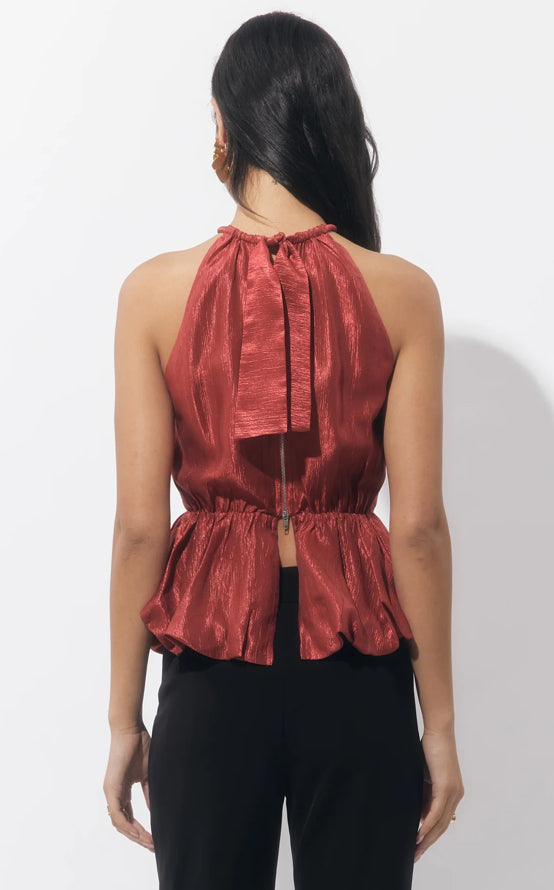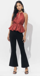 Adelyn Rae Lidia Bubble Halter Top Dark Rust