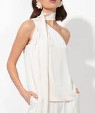 Adelyn Rae Lisette Scarf One Shoulder Top Ecru