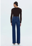 The slim boot that flatters every frame. Evie sits at a high rise with a slim fit through the hips and thighs before opening to a subtle bootcut, creating long, lean lines with just the right amount of flare. The full-length 33" inseam elongates the silhouette, making it endlessly versatile for heels or boots. Crafted from comfort stretch denim in Penthouse, a dark indigo wash with refined fading that adds depth and sophistication.