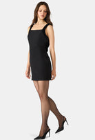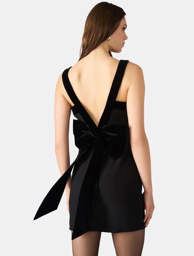 Step into style with this dress. An elegant little black dress with just the right amount of flair! It features a square neckline and slim straps showing off the back beautifully with a bow detail. This dress is perfect for evening parties, or nights out.