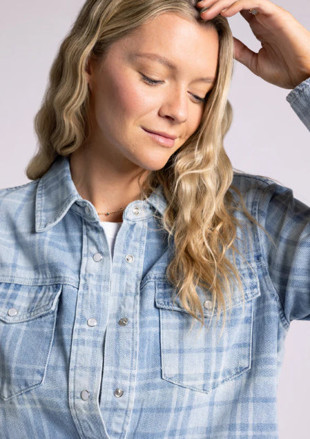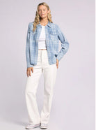 Your new favorite jacket from our Spring collection, featured in a 100% cotton fabrication with dual patch pockets and snap button front closure. Perfect for transition-season layering and added detail.