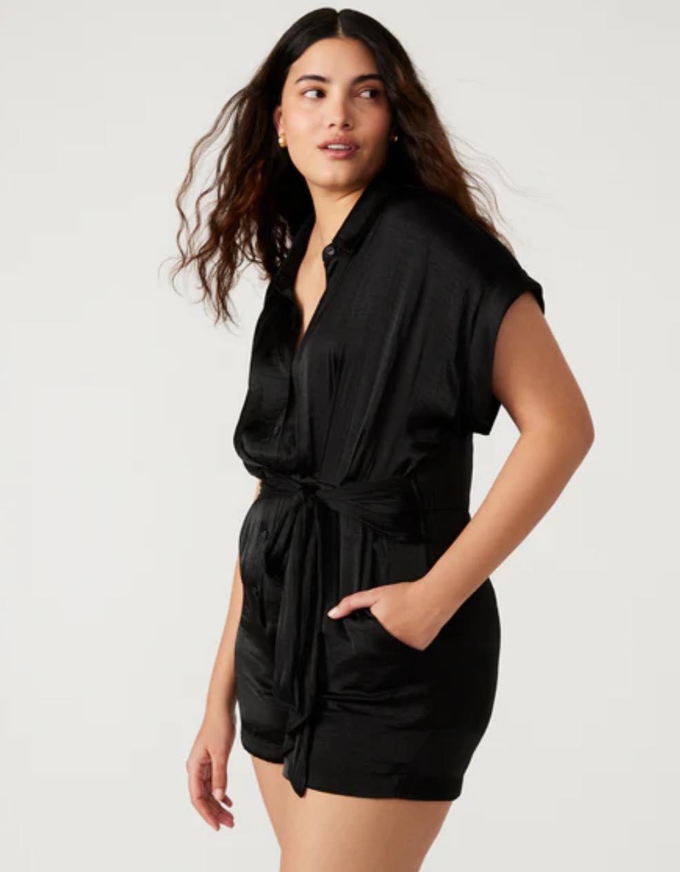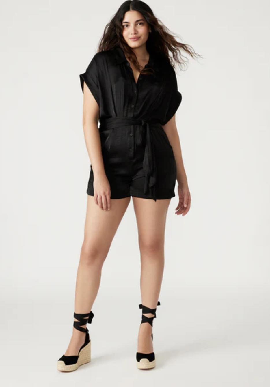 Freshen up your wardrobe with the Steve Madden Tori Romper! This playful romper features a collared, short-sleeve design with a functional button closure. The stylish tie-front detail and flattering shorts will make you stand out at any occasion. Plus, with two functional front pockets, you'll have space to stash your essentials. Made from 100% polyester for ultimate comfor