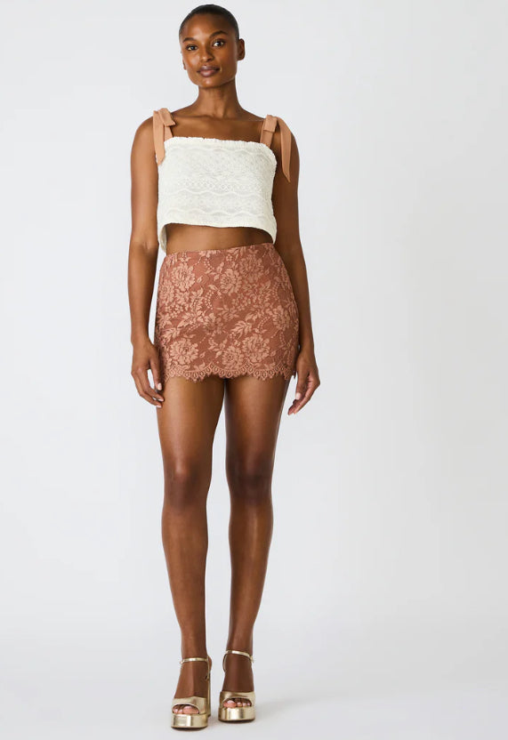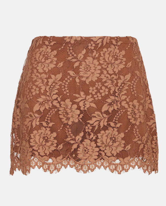 Elevate your evening style with the CINDI SKIRT MOCHA HEATHER. This skirt features an all-over lace design. It offers a coordinated fashion-forward ensemble perfect for special occasions or nights out. The skirt’s luxurious finish and fluid eye-catching flair, while maintaining effortless wearability.