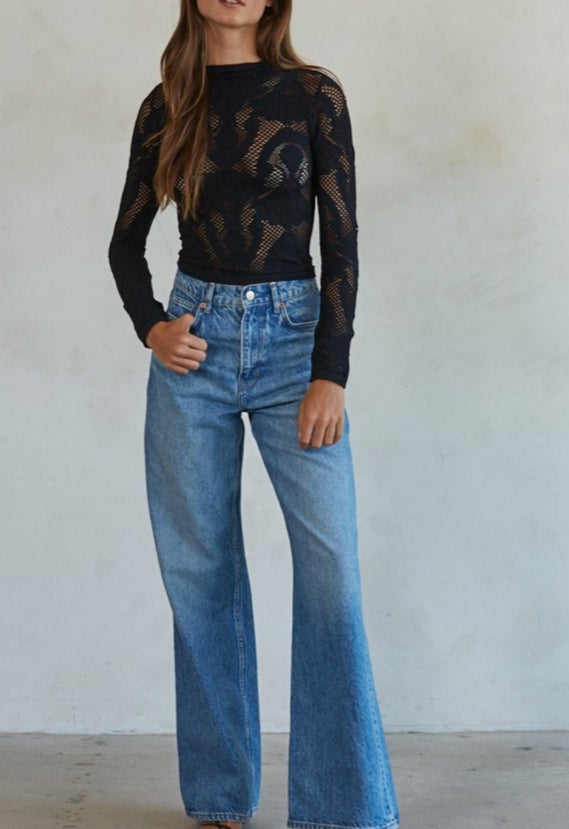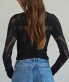 This top is sheer lace mock-neck top exudes modern femininity with a touch of edge. The intricate mesh pattern adds texture and allure, while the fitted silhouette and cropped hem make it perfect for pairing with high waisted skirts or tailored trousers.