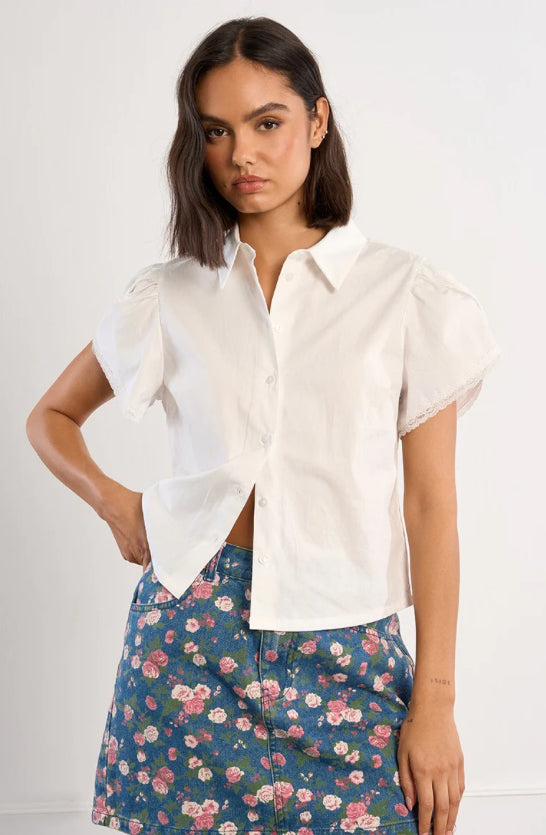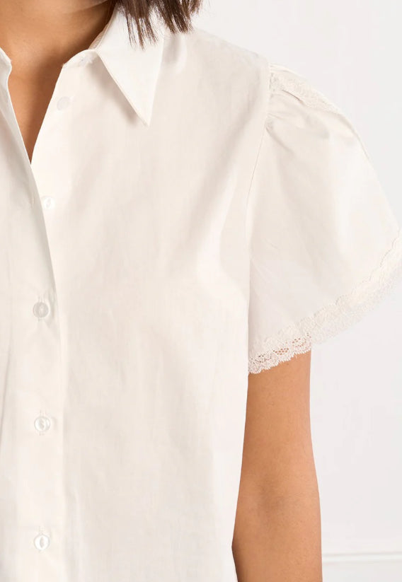 Woven White Lace Sleeve Detail Shirt
