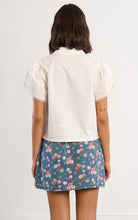 This adorable button is a must have to add to any wardrobe. The sleeved blouse features feminine lace details to give it a soft look. The sleeves also offer a touch of volume. This collared shirt includes a button down closure and a straight fit.