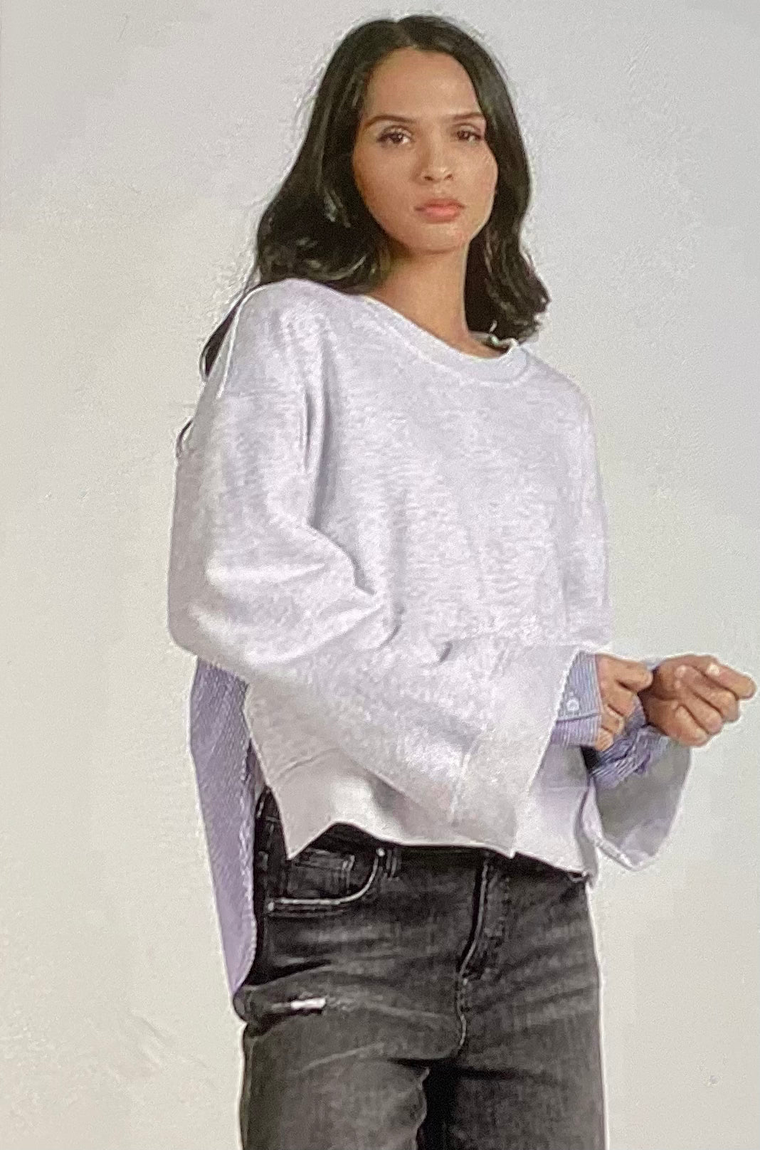 Elan Striped Mixed Media Top