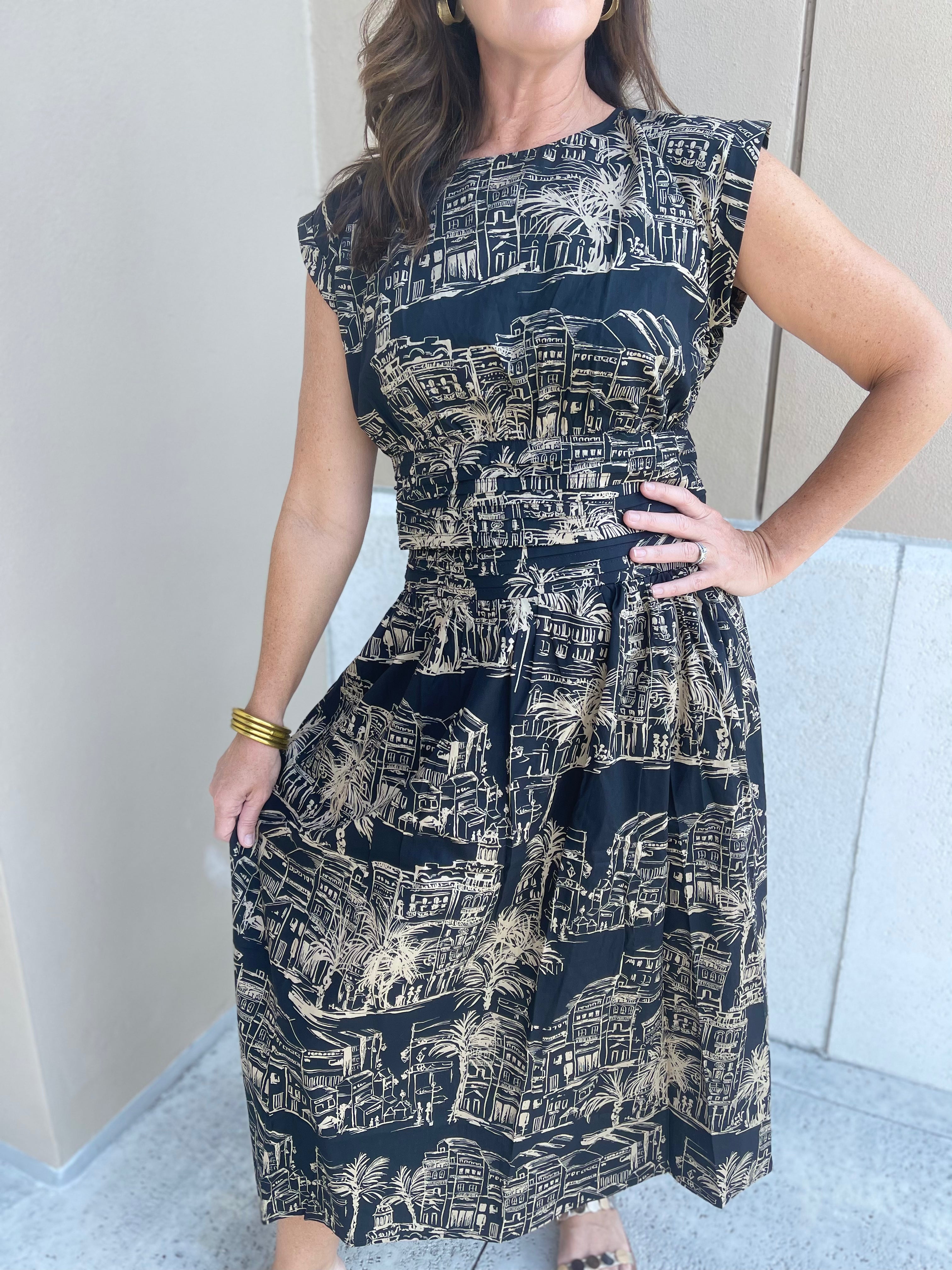 Aylaya Grace Printed Denim Belted Shorts Song Bird