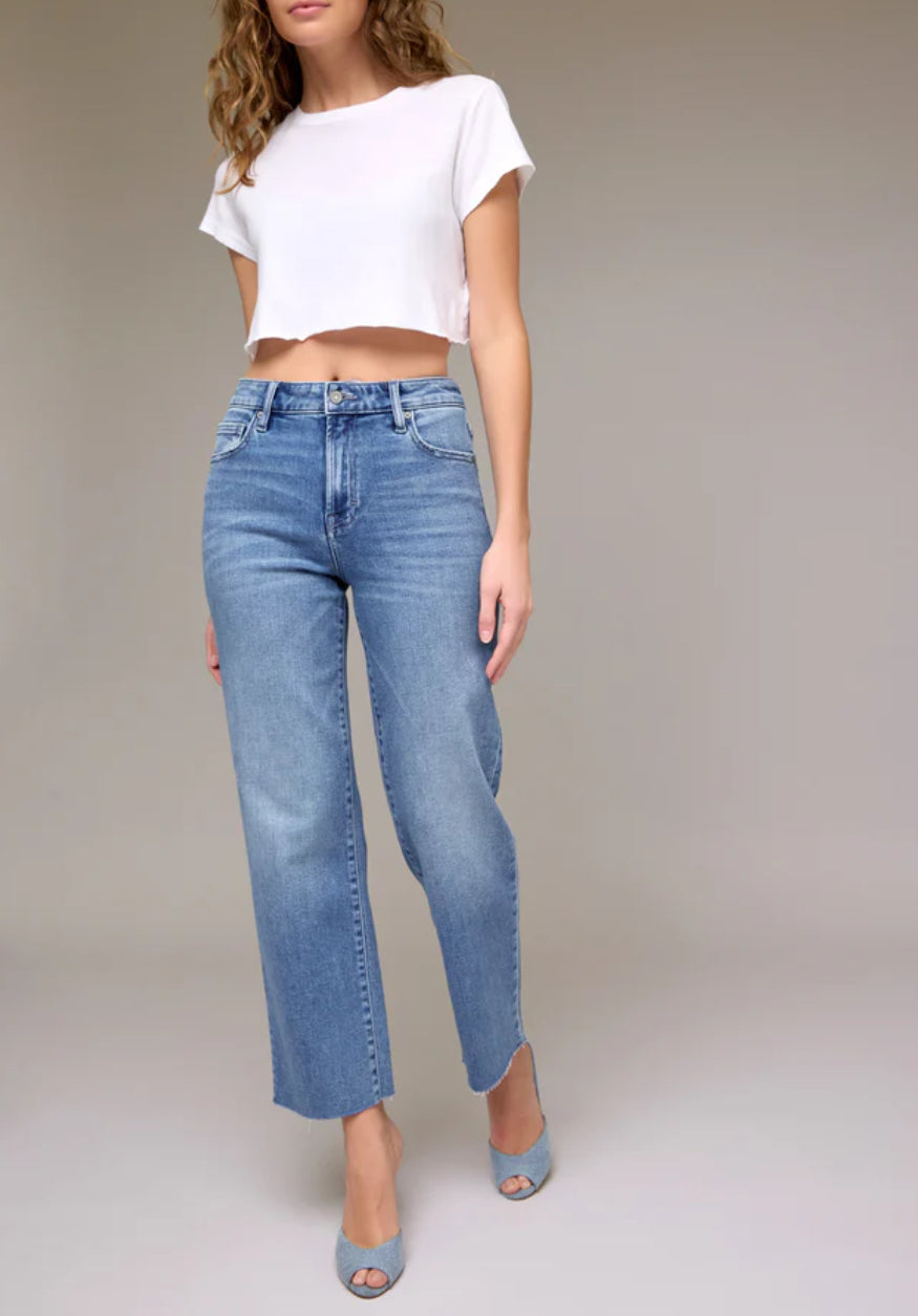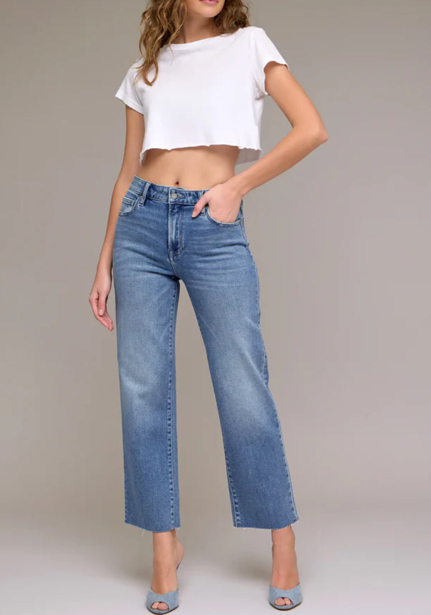 Elevate your style with our Hidden 28" Inseam Tracey High Rise Straight jeans in medium wash. With a hidden inseam of 28 inches, these jeans provide a flattering fit for all body types. The high rise design accentuates your curves and offers comfort and support all day long. Perfect for any occasion, these jeans are a must-have in your wardrobe.