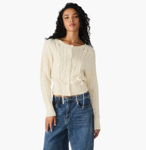 The Saidee Cable Ribbon Ties Cardigan offers a modern twist on a classic design. Crafted from a soft polyester and nylon blend, this cardigan features elegant cable knit detailing and ribbon tie accents for added texture and style. Designed for comfort and versatility, making it an ideal layering piece for various occasions.