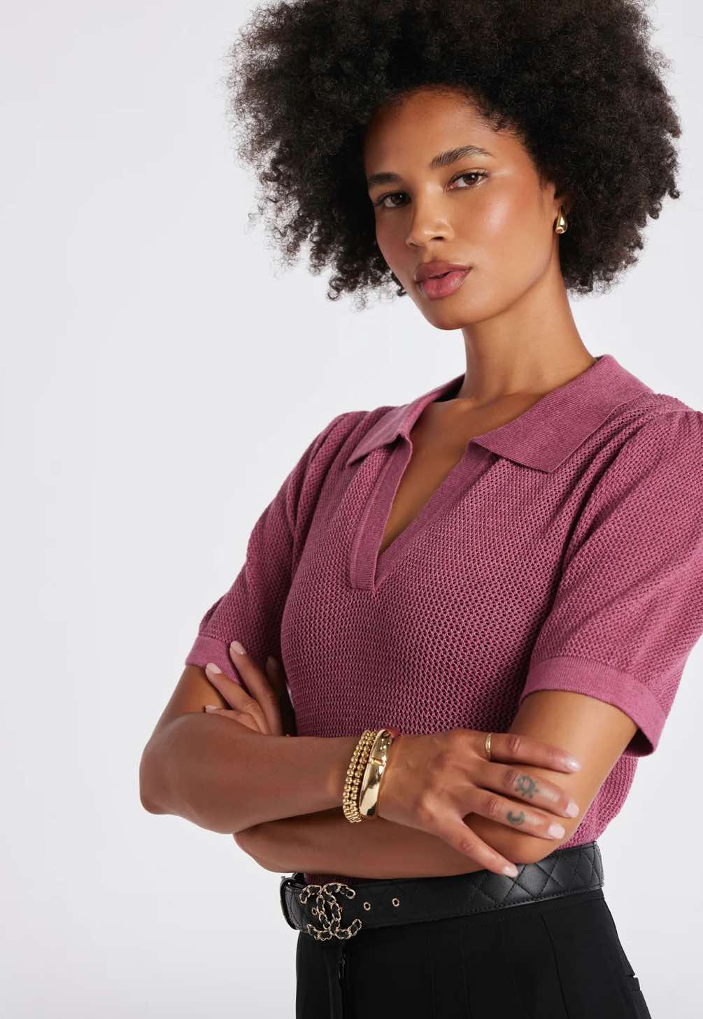 The Willa is our take on the classic polo. This will quickly become your everyday go-to. This Sweater features a loose-knit weave for added ease and comfort, finished with a neat polo collar. This style pairs well with everything from trousers to denim.