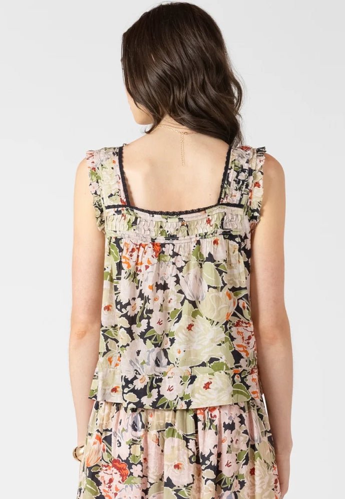 Black Tape Pintuck Detail Button Front Tank Vintage Rose
