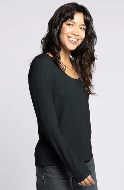 Relaxed and buttery soft, this scoop neck long sleeve is crafted from our micro model blend for a sleek, flattering feel. Lightweight and easy, it’s perfect tucked in or untucked.